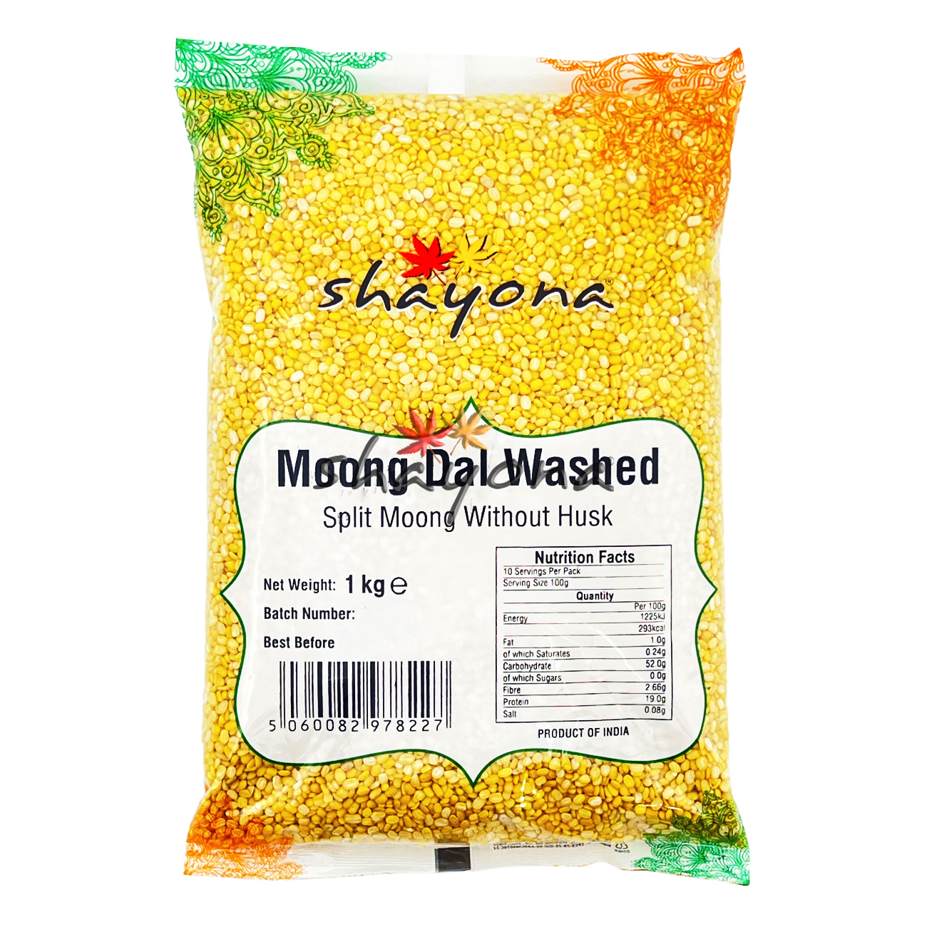 Shayona Moong Dal Washed - 12 X 1kg Case Size: 12